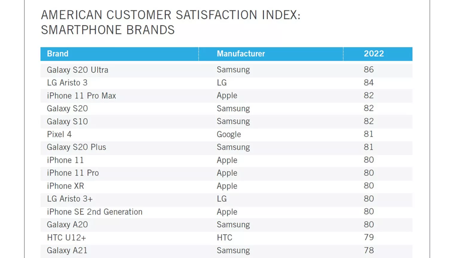 As usual, the ACSI report of the best smartphones also shows a lot of the older phones including the Google Pixel 4. The more interesting is that companies such as HTC and LG managed to be on the list, too. This only shows that although Samsung and Apple are the preferred choices for consumers in the U.S., a lot of people are more than happy with older phones and using them, too.
