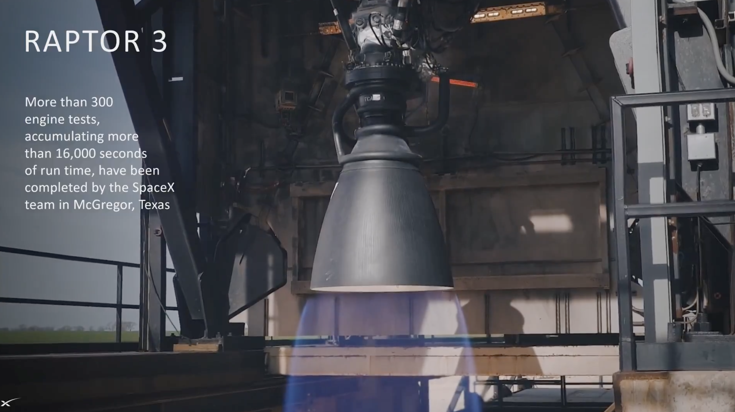 Future Starships will feature SpaceX's Raptor 3 engine. Musk's presentation revealed that his firm had tested the engine 300 times. The Raptor 3 "is designed to require no base heatshield, saving a lot of mass on the bottom and actually improving reliability," said Musk. He added that the reliability and the engine's structure mean that "if there is, for example, a small fuel leak from the Raptor engine, it will simply leak into the existing flaming plasma and not really matter."