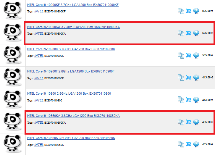 The Core i9-10900KA costs 2.1% less than Core i9-10900K. The Core i9-10850KA costs the same price as the Core i9-10850K. The Core i9-10700KA costs 1.2% less than Core i7-10700K. The Core i9-10600KA costs 2.8% less than Core i5-10600K. Overall, they cost 2% less than the F counterparts. The price difference makes it seems that Intel doesn't really need to introduce this chip, rather they want to either saturate the market or just add more models.