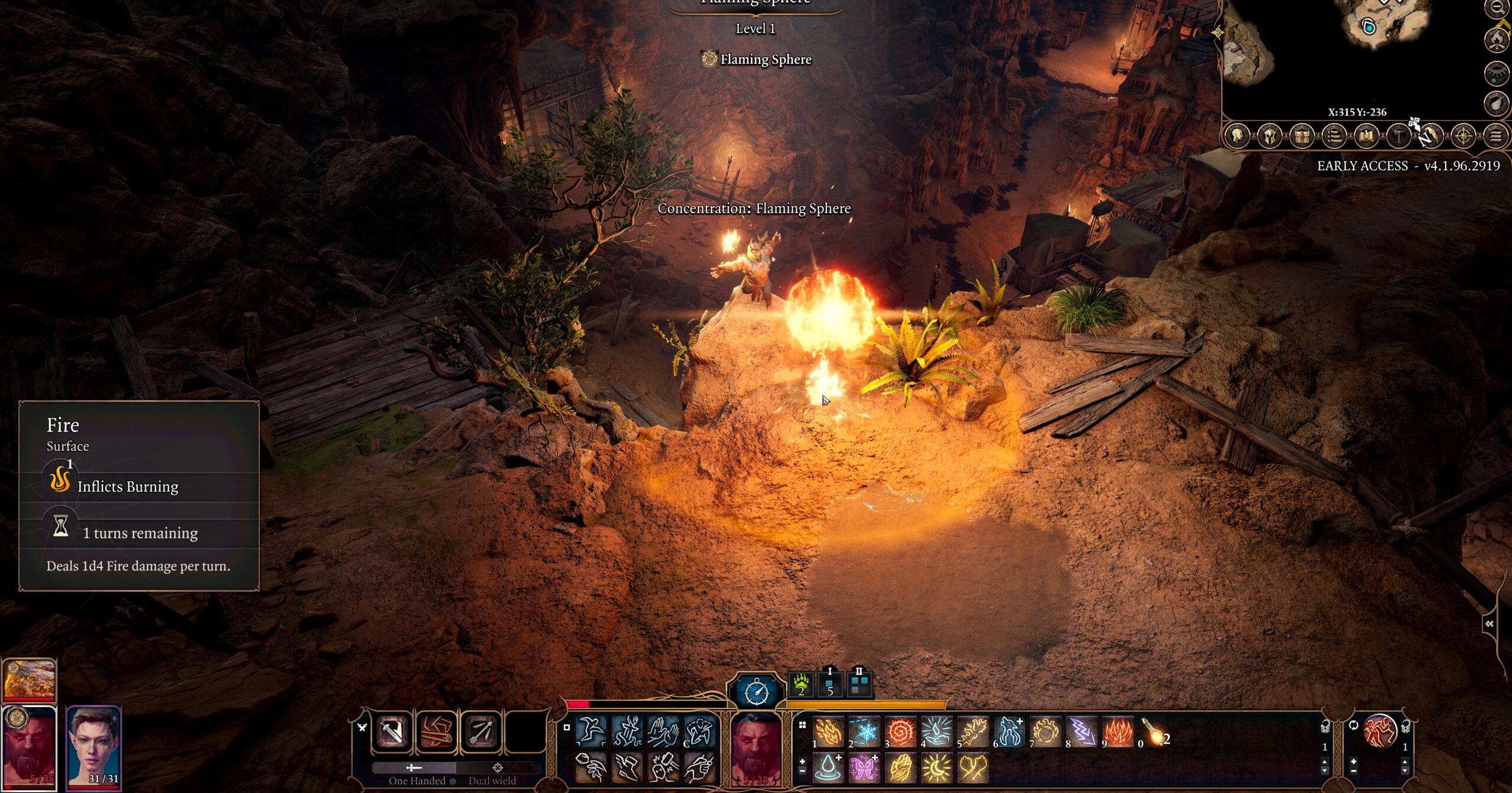 - Quality of life: A series of much-requested features have been implemented. Players can now target friends and enemies with spells and equipment by clicking on their portraits. As an alternative to trying to click on a character in the world, players can now easily select and attack whoever they want from the UI. We also added a flee button for the errr… tacticians among us. And using torches has never been easier thanks to the long-awaited addition of the torch button!