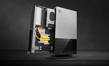 The MSI MAG Trident S 5M is furnished with an 8-core, 16-thread AMD Ryzen 5700G APU in its 2.6-liter body, supporting FidelityFX Super Resolution technology, doubling the number of frames in games (2.4 times the amount). The motherboard is also supplied with two SSD PCIe Gen 3 slots and a 2.5" hard drive slot, letting players store more of their favorite games and files. Gamers can upgrade components through the uniquely designed motherboard quick slot. By removing just one screw, anyone can upgrade the motherboard with ease.