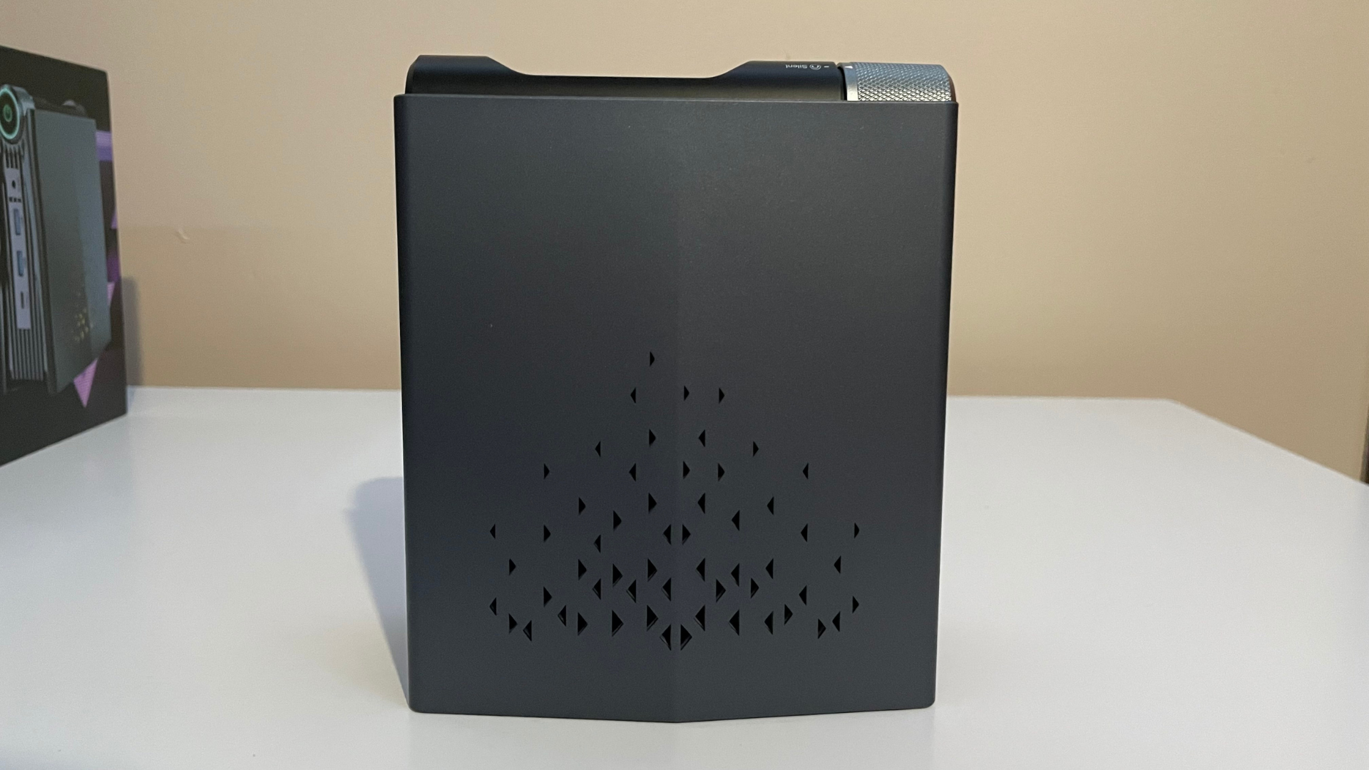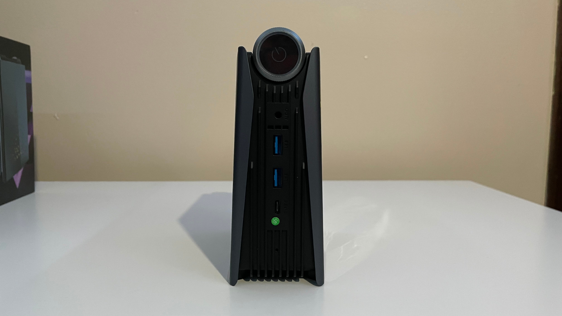 The ARM5 is one of the more visually attractive Mini PCs I have seen. Its pseudo-futuristic-looking style and angled case stand out compared to most mini PCs shipped in a square or smaller. Also, the fact that the company has made the mini PC stand vertically helps to make this a unique build.