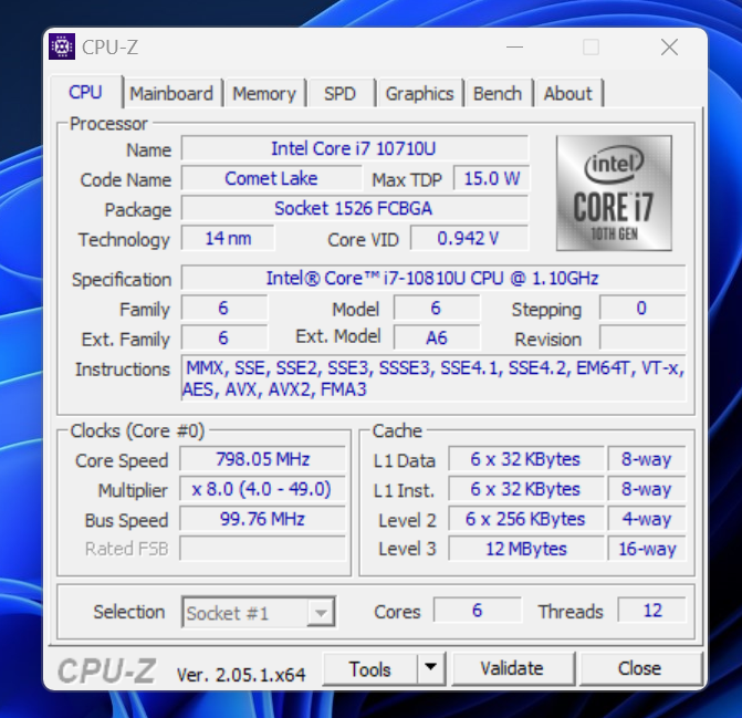 Let us talk about the Intel Core i7-10810U. The processor comes to us in the second quarter of 2020 and is from the 10th Gen Core i7 processor series (Comet Lake) in the mobile line. Mobile processors are generally used in most mini PCs as they offer substantial performance compared to their desktop counterparts. However, we are currently in the Raptor Lake and upcoming Meteor Lake generation, which is three to four generations younger than the processor in the Ace Magician CK10. The Intel Core i7-10810U is built on the 14 nm process technology, offering six cores across twelve threads. The base frequency of the Intel Core i7-10810U is 1.10 GHz with a boost of 4.90 GHz. The total cache for the processor is 12 MB of Intel Smart Cache and offers a bus speed of 4 GT/s and a TDP of 15 W.