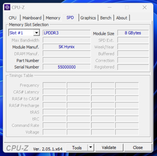 CPU-Z collects data from your systems, such as the CPU name and number, series codename, process, package, cache levels, mainboard and chipset, memory type, size, timings, module specifications (SPD), and real-time measurement of each core's internal frequency and memory frequency.