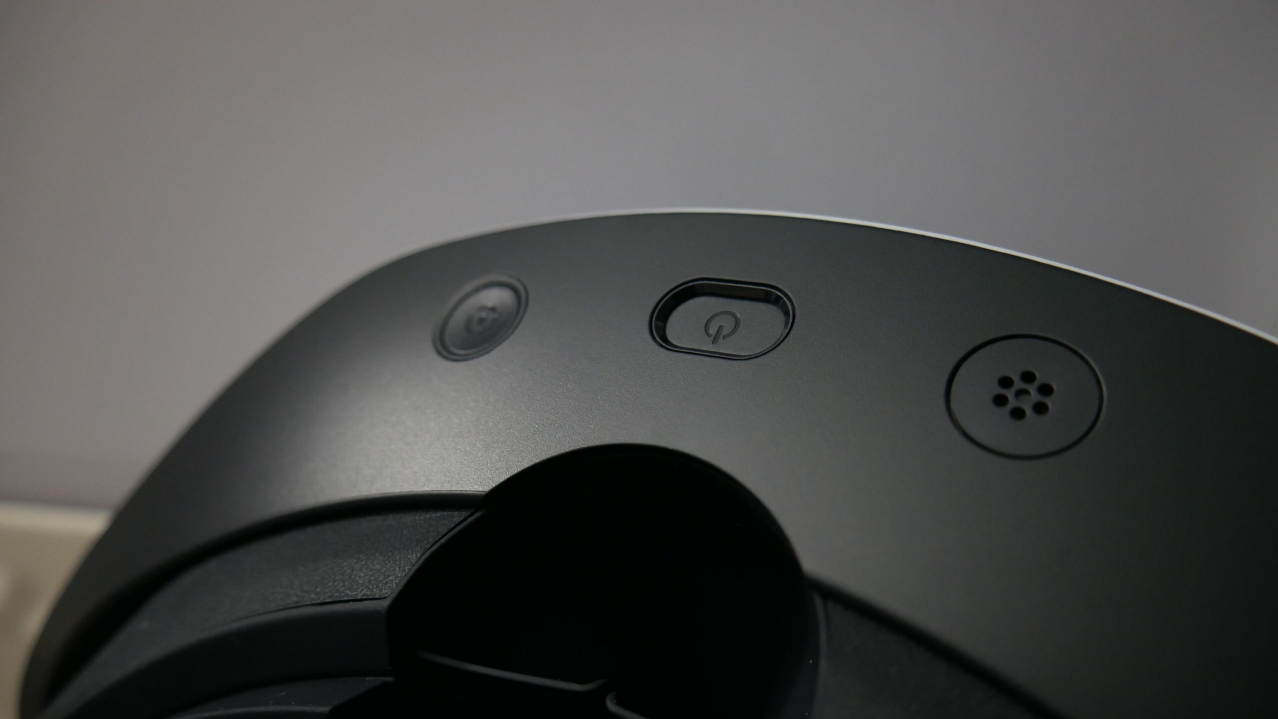 To wear the PlayStation VR2 headset for the first time, there are three separate steps. A recessed button atop the core display lets the headset slide forward and back on its limited track while the rear of the headband features both a push-button to release and a ratcheting tightness wheel that draws the headset and headband back closer together. Once the headset is on, a dial on the top left corner of the PlayStation VR2 allows players to dial in their perfect PD (Pupillary Distance). Since everyones’ head and eyes are slightly different, there won’t be any perfect way to attach the headset and it really comes down to comfort and being able to see the display within the headset without any blurriness or discomfort.