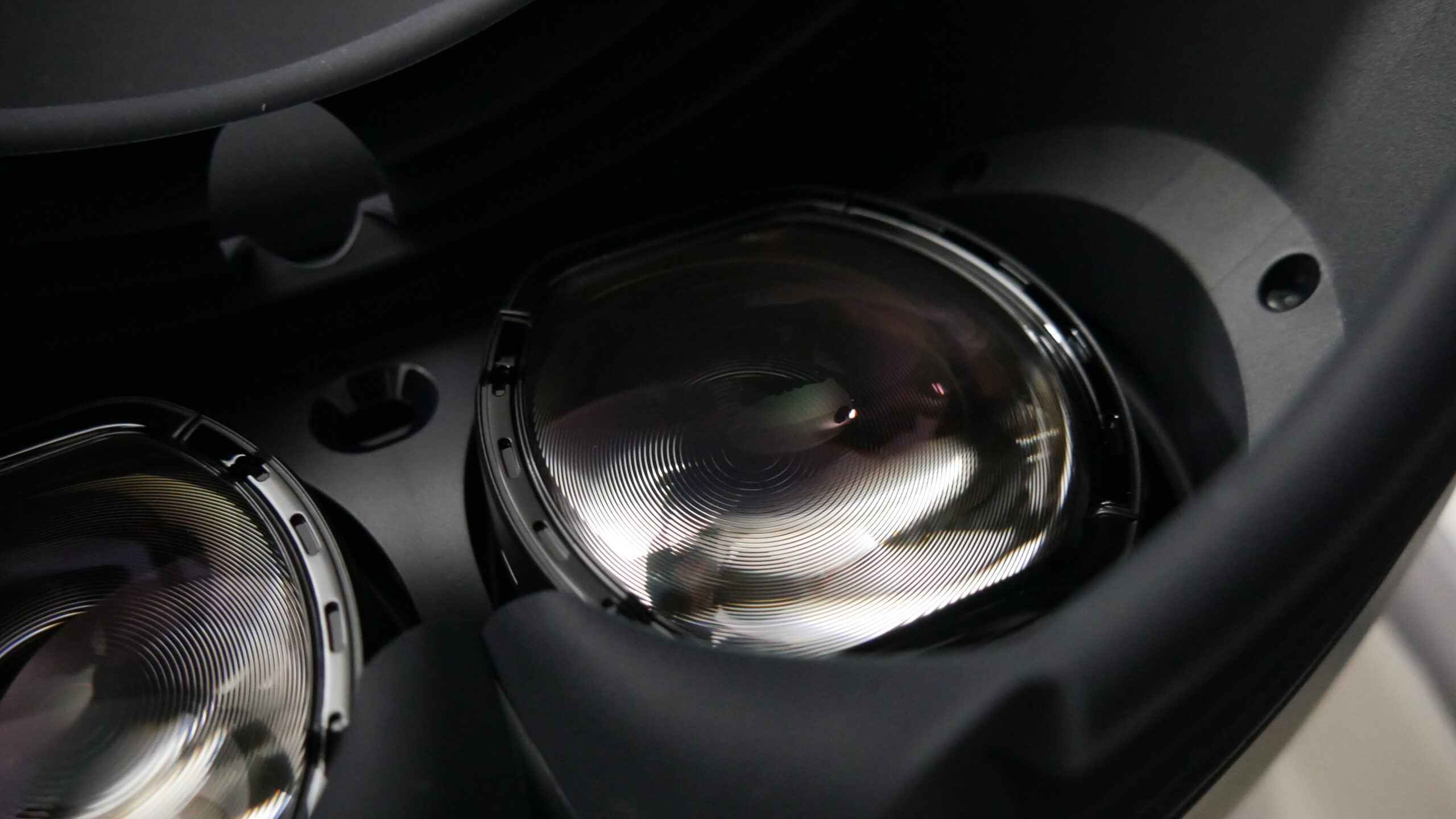 Out of the box, Sony presents both the headset and VR2 Sense controllers first and foremost with the non-essential goods, such as wired earbuds and instruction manuals, tucked away in a separate box. With only a minimal bit of unwrapping necessary, the PS VR2 requires almost no effort to assemble before it’s ready to plug and play. Aside from plugging the PlayStation VR2 headset into the front USB-C port and syncing both Sense controllers for the first time via the all-too-familiar USB cable to pair, the only other bit to assemble is attaching the earbuds in place, which snap into the underside of the headband rather than the core display itself. The earbuds lock neatly into position and even if you plan on using other IEMs or headphones, there’s little reason to detach them since the dangling earbuds themselves don’t really distract when they’re hanging in place.