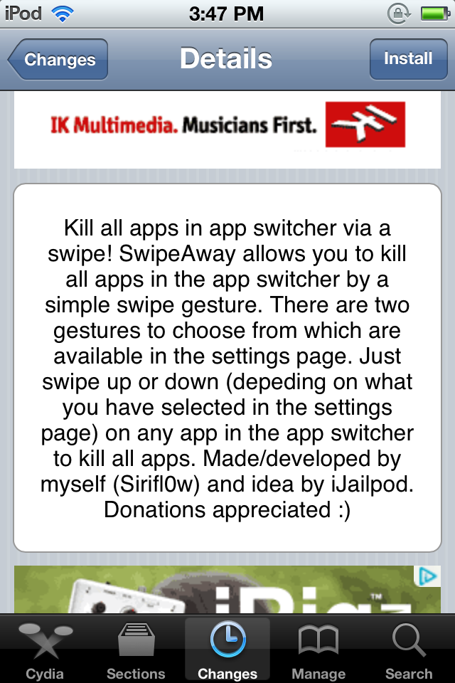 SwipeAway is an absolutely amazing Cydia Tweak that let's you do away with messy applications ruining your appswitcher. This is especially useful when your children are done experimenting with almost every game in the App Store and hand you back the iPad / iPhone / iPod Touch with the appswitcher completely cluttered with a mess of God knows what apps from and there are endless rows of them stretching as far the eye can see. Ordinarily you would have to hold down one app an tap the red " - " to make them go away but what if I told you about this handy tweak that completely empties your appswitcher out in a single upward swipe? This is where SwipeAway comes to play.