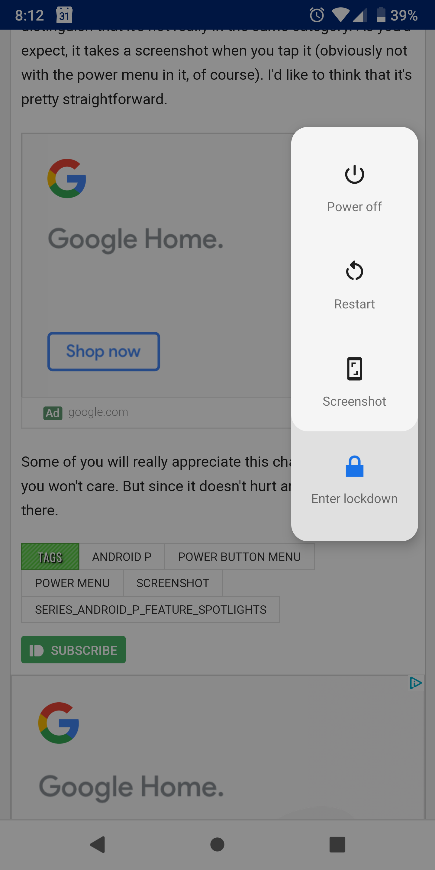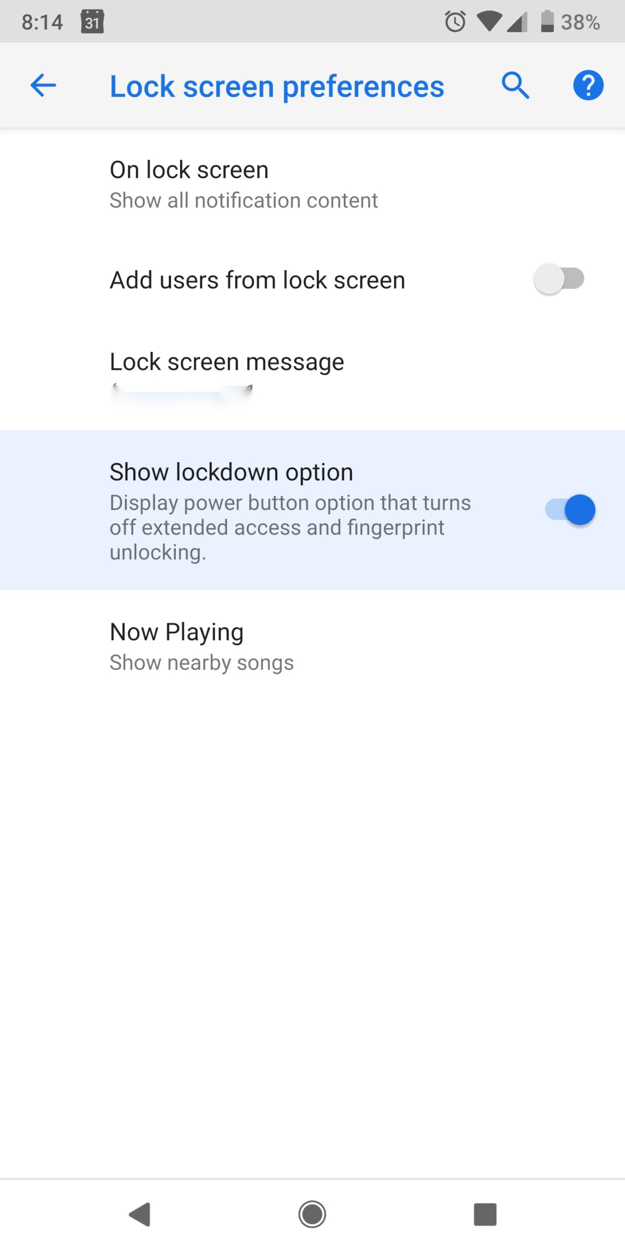Android P brings with a new lockdown mode that disallows the device to be unlocked via fingerprint, voice and smart lock. The option can be found in the lock screen preferences from where it has to be toggled. The lockdown option consists of a blue lock icon located at the bottom of the power menu. However, the lockdown mode is valid only for one unlock. So if you unlock your device after enabling lockdown mode, you have to re-enable it to take effect after locking your phone for a second time. The mode also blocks what Google calls "Enhanced Access" to the device, but we're not sure what that means, yet.