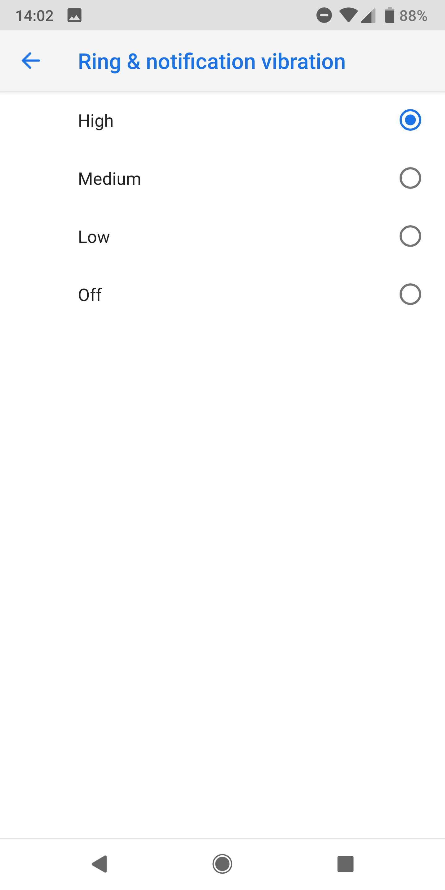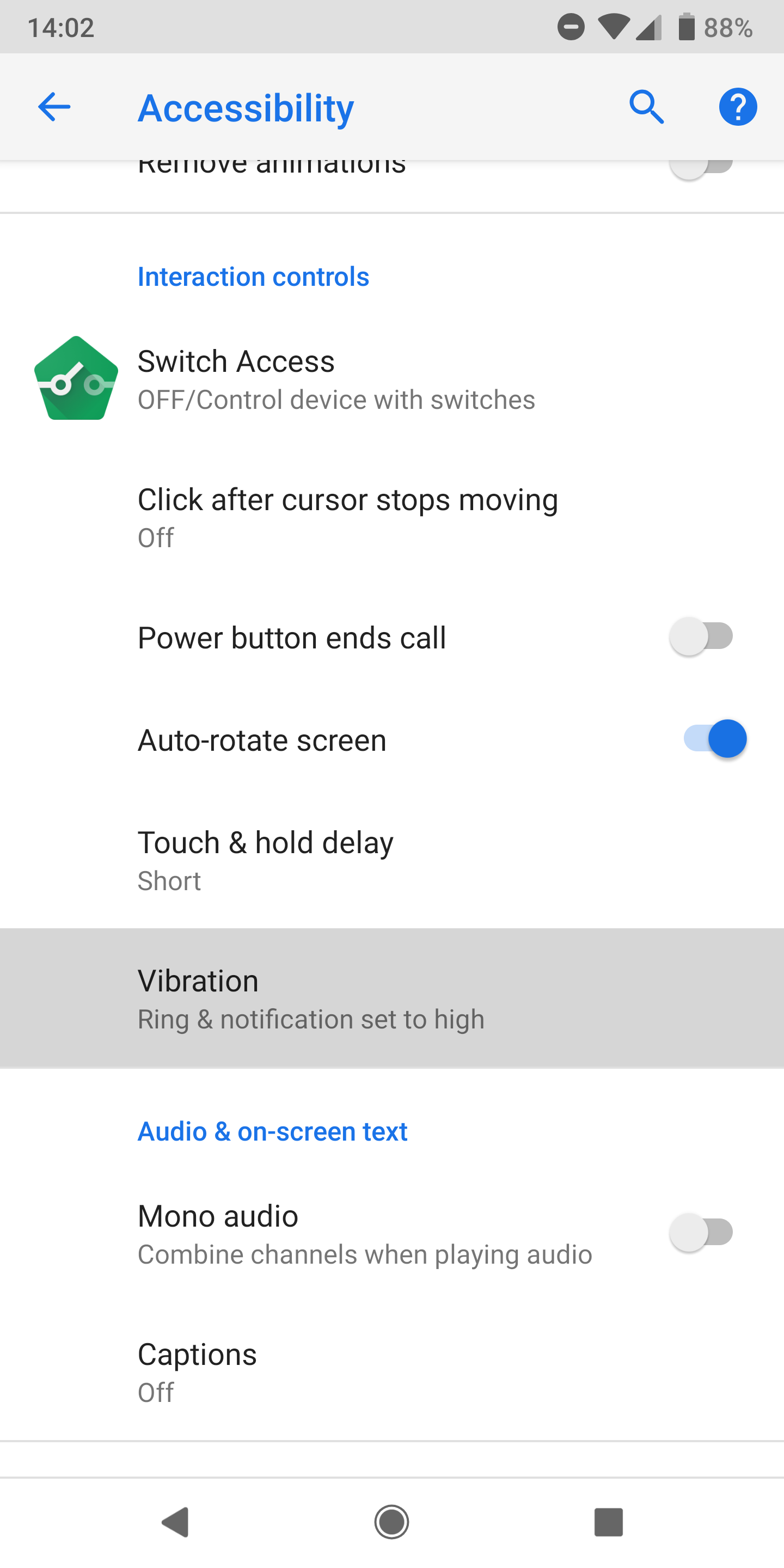 The ability to adjust the intensity of the phone vibration motor was a feature that Stock Android was sorely lacking. Frankly, I'm surprised that it took Google so long to implement it in the first place. In Android P, you'll find a new Vibration section in the accessibility settings that lets you change the vibration strength for phone calls, notifications, and touch. They can be set to High, Medium, Low, and Off. Some devices' vibration motors feel like a pocket defibrillator, and we're glad that we can turn them down a notch.