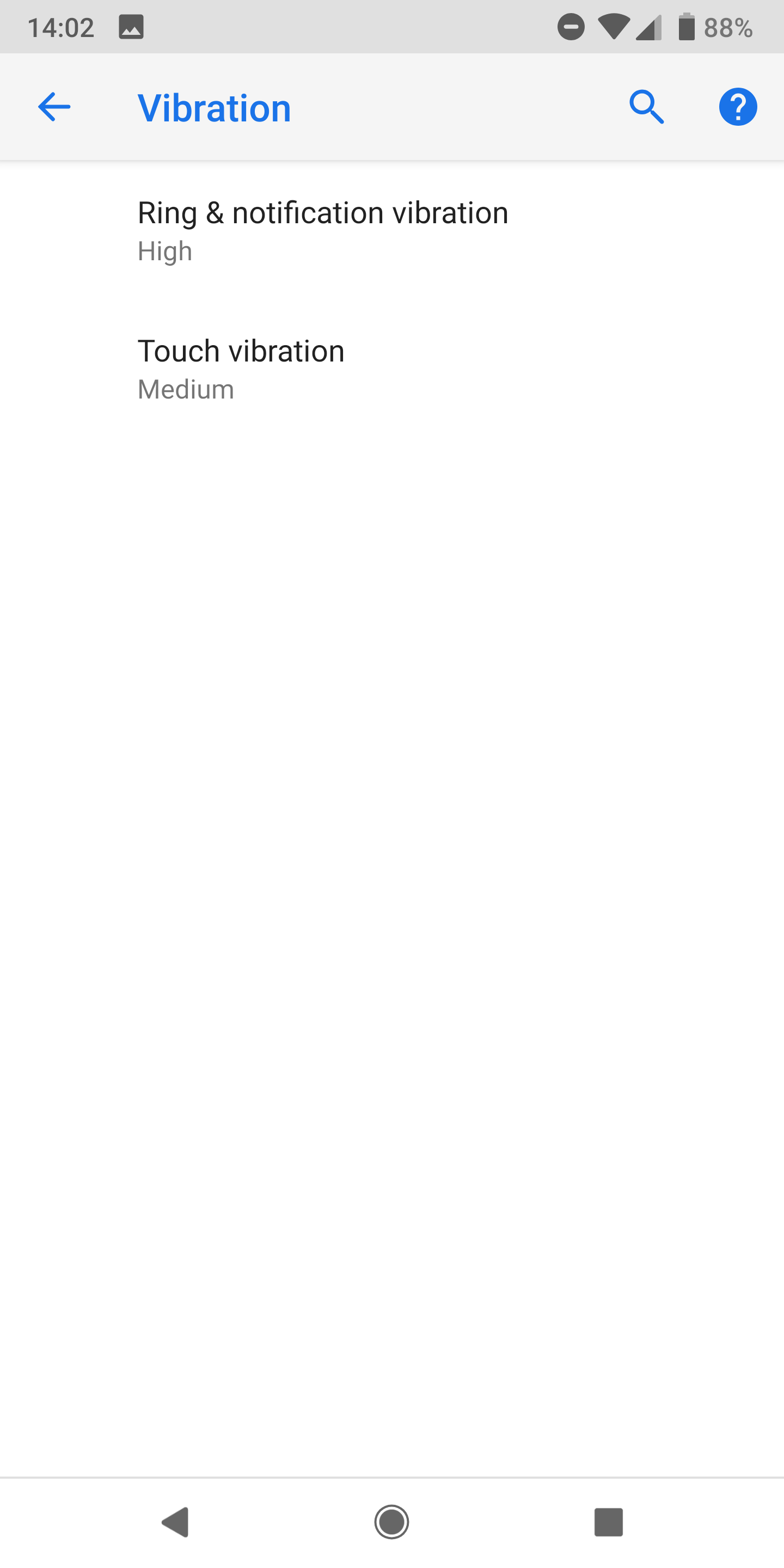 It is possible to change the vibration strength for calls, notifications, and touch